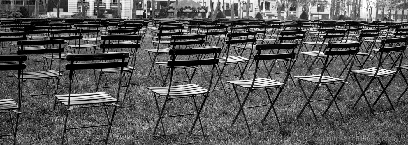 ↑ The first anniversary of the September 11th attacks at the World Trade Center site. 2753 chairs on the lawn at Bryant Park, each in honor of someone that died at “Ground Zero.”