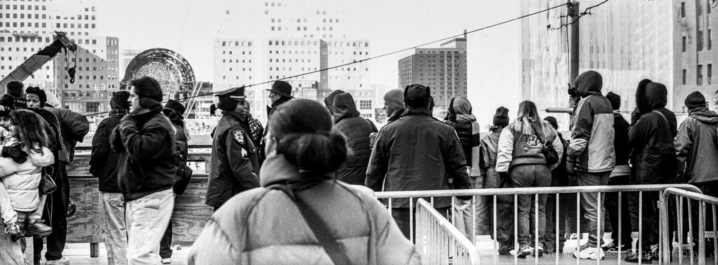 ↑ Visitors and tourists to the city were among the mourners waiting on line for access to a viewing platform at the World Trade Center site. ↓